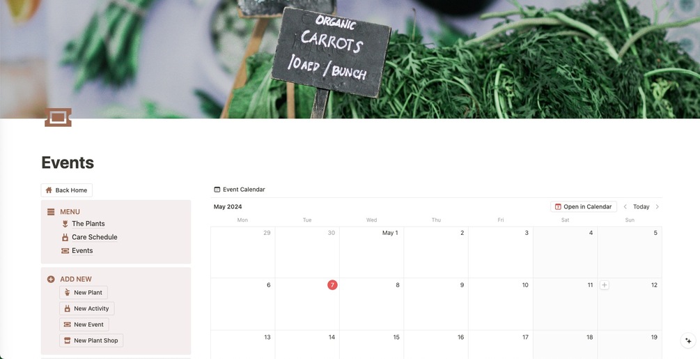 Want to keep track of plant events in the neighbourhood? This template also allows you to enter event details and see it in a convenient calendar!